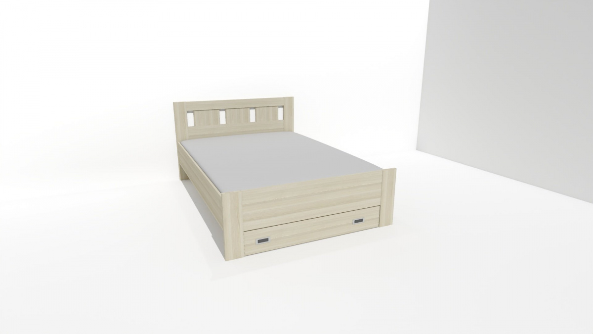 Čelo této postele poskytuje vzdušný prostor u zdi a minimalizuje tak možnost tvorby vlhkosti v oblasti dvoulůžka. Čelo a nohy dvoulůžka jsou vyrobeny v síle lamina 25mm, bočnice 18 či 25mm. Výběr z několika akčních dekorů. Kvalitní kování a spojovací materiál je bez použití plastových součástek, vyjma ochranných krytek.