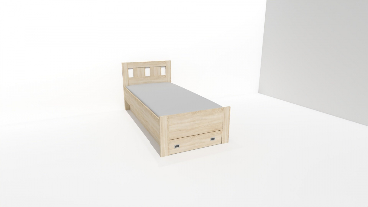 Čelo této postele poskytuje vzdušný prostor u zdi a minimalizuje tak možnost tvorby vlhkosti v oblasti dvoulůžka. Čelo a nohy dvoulůžka jsou vyrobeny v síle lamina 25mm, bočnice 18 či 25mm. Výběr z několika akčních dekorů. Kvalitní kování a spojovací materiál je bez použití plastových součástek, vyjma ochranných krytek.