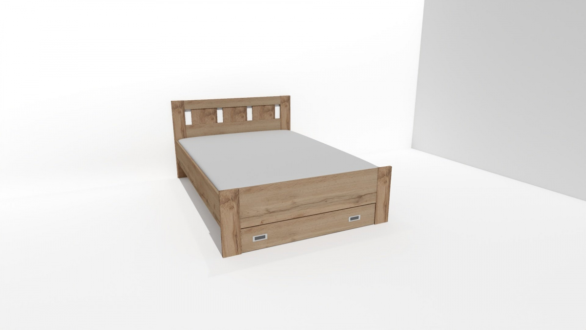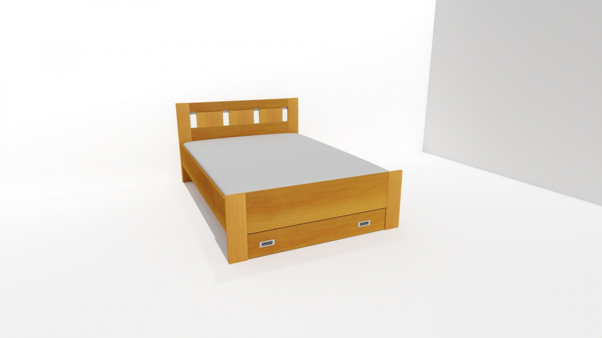 Čelo této postele poskytuje vzdušný prostor u zdi a minimalizuje tak možnost tvorby vlhkosti v oblasti dvoulůžka. Čelo a nohy dvoulůžka jsou vyrobeny v síle lamina 25mm, bočnice 18 či 25mm. Výběr z několika akčních dekorů. Kvalitní kování a spojovací materiál je bez použití plastových součástek, vyjma ochranných krytek.