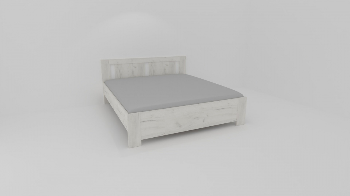 Rustikální dvoulůžko s otvory v čele, které dávají možnost odvětrávání přilehlé zdi. Možnost doplnění o výsuvný úložný prostor. Čelo a nohy dvoulůžka jsou vyrobeny v síle lamina 25mm, bočnice 18 či 25mm. Výběr z několika akčních dekorů. Kvalitní kování a spojovací materiál je bez použití plastových součástek, vyjma ochranných krytek.