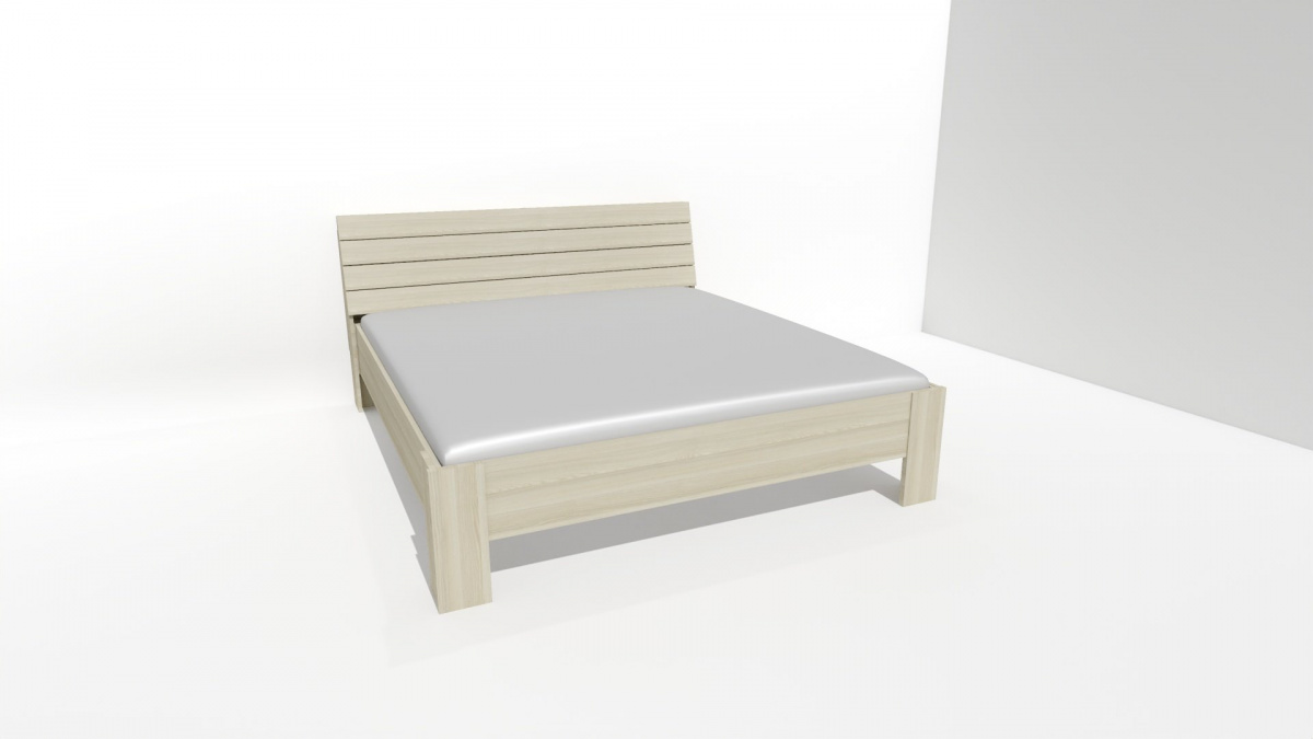 Dvoulůžko, jenž zapadá do vkusu milovníků moderny i rustikálního stylu bydlení. Čelo a nohy dvoulůžka jsou vyrobeny v síle lamina 25mm, bočnice 18 či 25mm. Výběr z několika akčních dekorů. Kvalitní kování a spojovací materiál je bez použití plastových součástek, vyjma ochranných krytek.