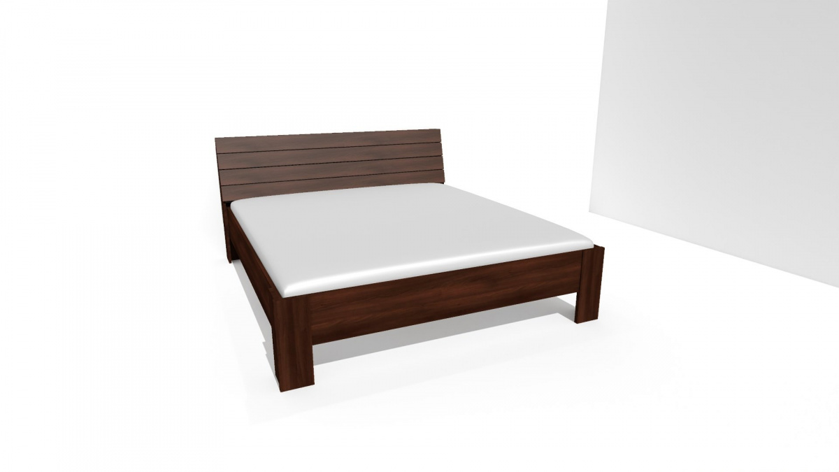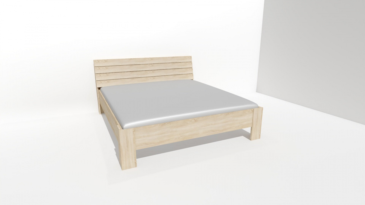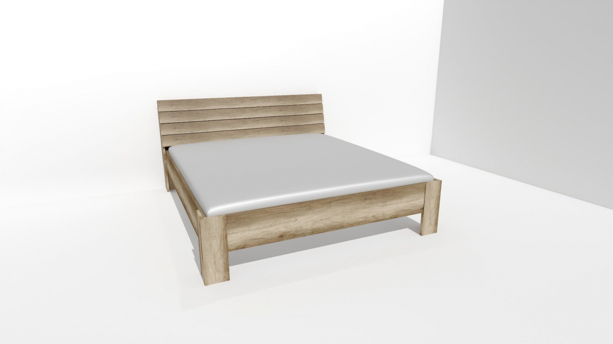 Dvoulůžko, jenž zapadá do vkusu milovníků moderny i rustikálního stylu bydlení. Čelo a nohy dvoulůžka jsou vyrobeny v síle lamina 25mm, bočnice 18 či 25mm. Výběr z několika akčních dekorů. Kvalitní kování a spojovací materiál je bez použití plastových součástek, vyjma ochranných krytek.
