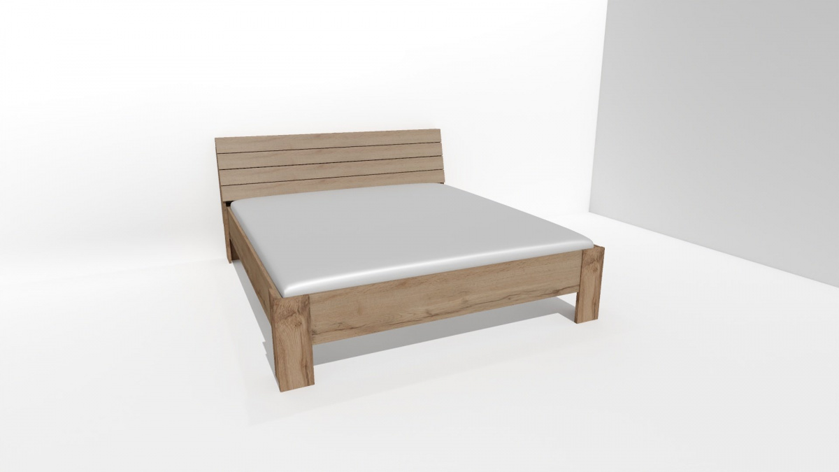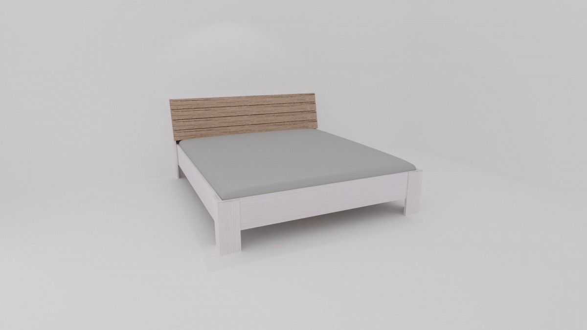 Dvoulůžko, jenž zapadá do vkusu milovníků moderny i rustikálního stylu bydlení. Čelo a nohy dvoulůžka jsou vyrobeny v síle lamina 25mm, bočnice 18 či 25mm. Výběr z několika akčních dekorů. Kvalitní kování a spojovací materiál je bez použití plastových součástek, vyjma ochranných krytek.