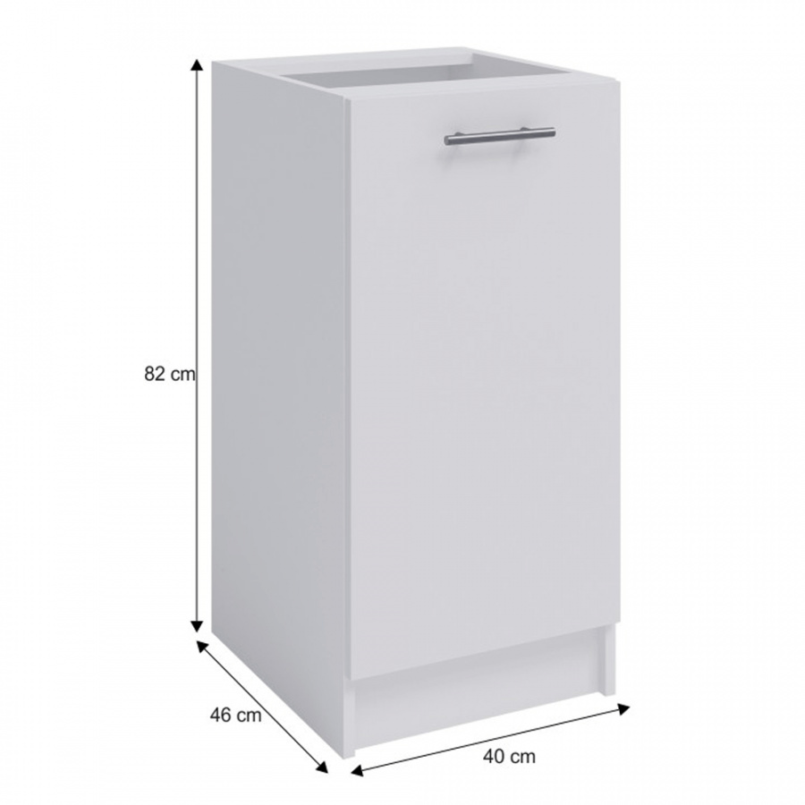 dolní skříňka S - 40, materiál: DTD laminovaná, barevné provedení: bílá, rozměry ŠxVxH: 40x82x46 cm. Tloušťka materiálu: 16 mm Dodáváno v demontu.