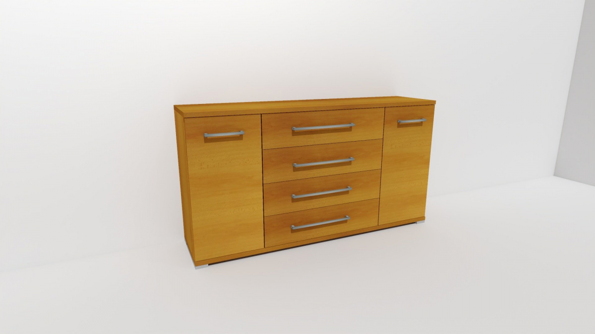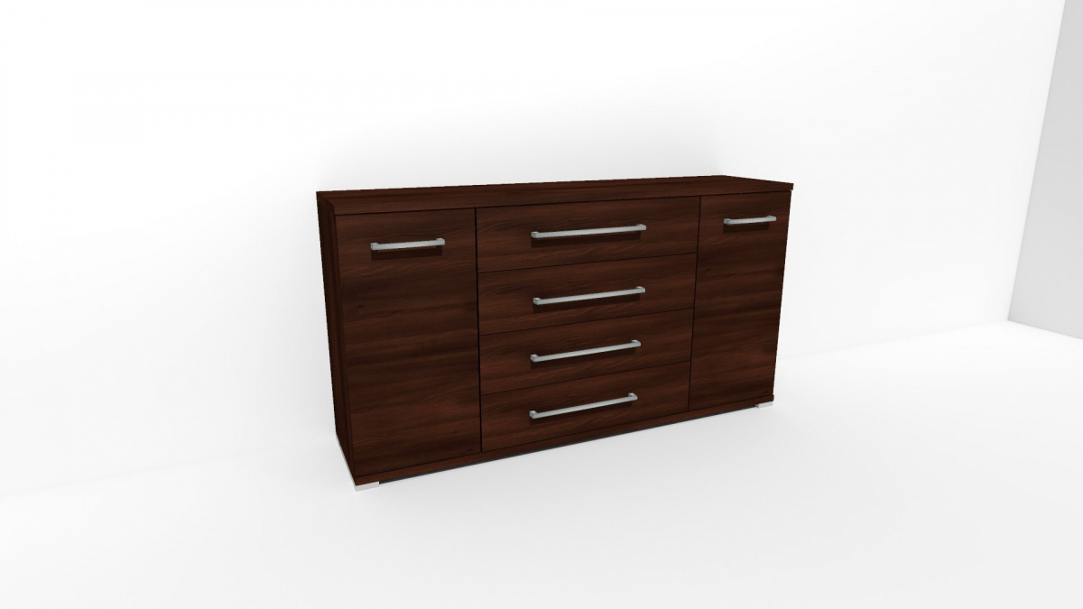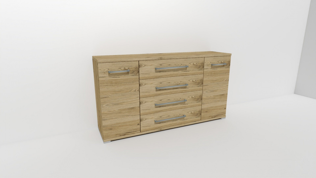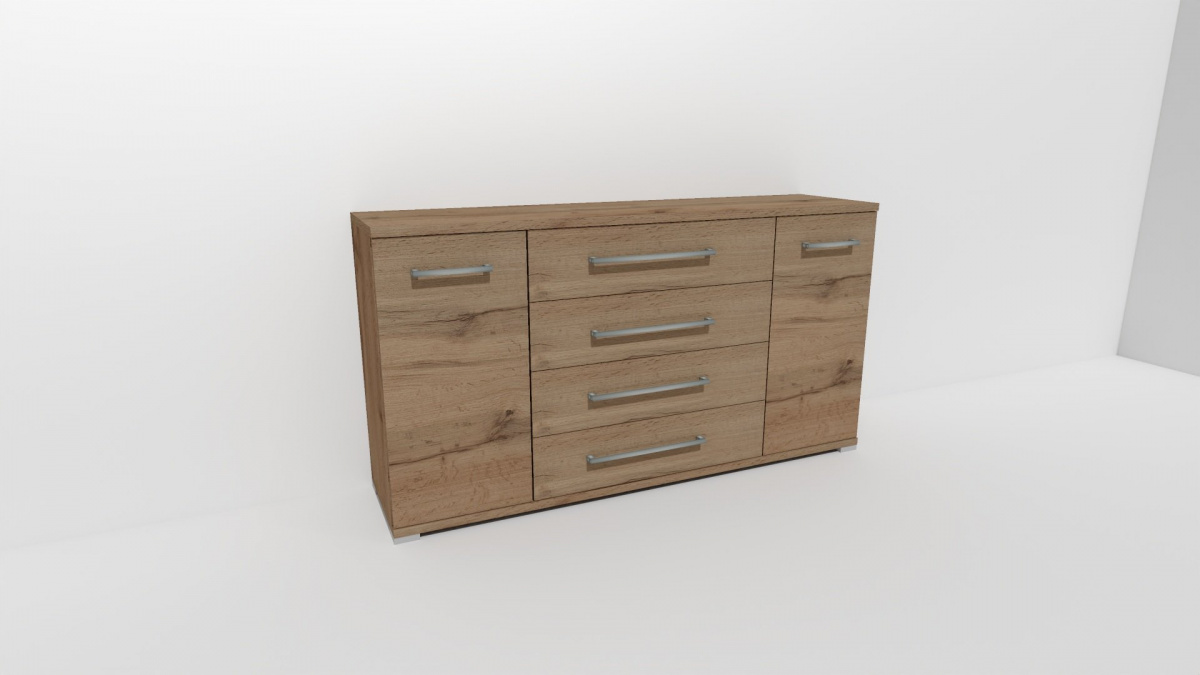 Úchytky příjemné do rukou a zásuvky, jenž jsou přizpůsobené častému otevírání jsou standardem nejen této řady komod. Vyrobeno z lamina o síle 18/25 mm. Výběr z několika akčních dekorů. Kvalitní kování a spojovací materiál je bez použití plastových součástek, vyjma ochranných krytek. Nastavitelné nohy nepoškozují podlahu.