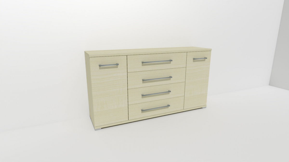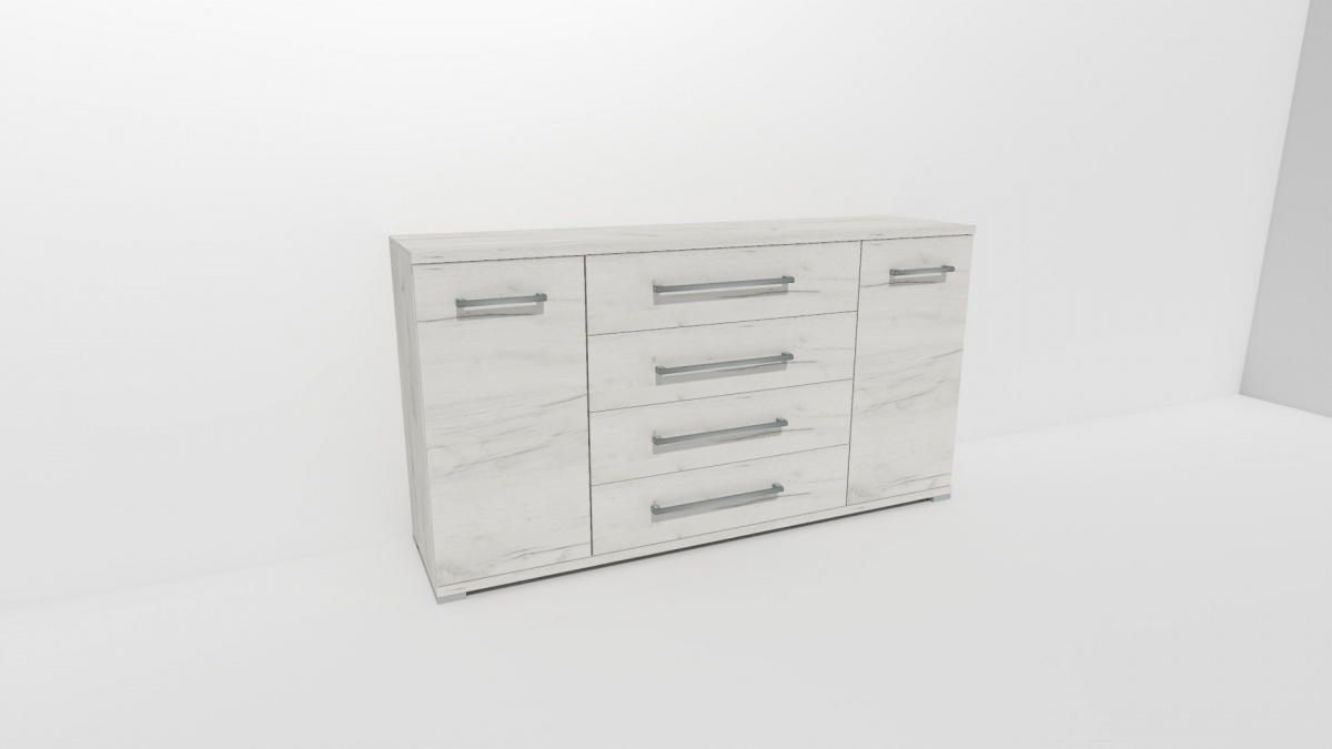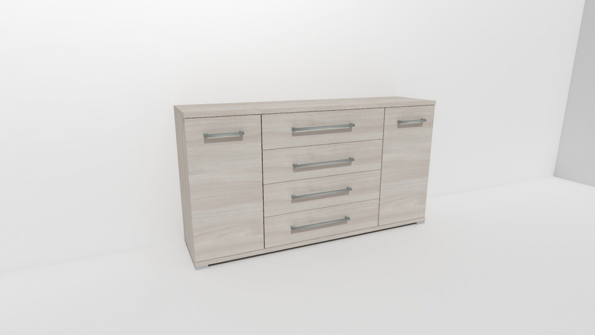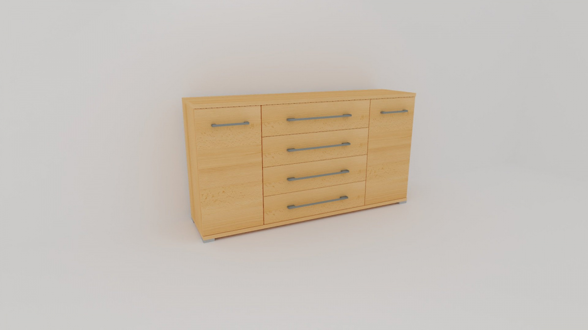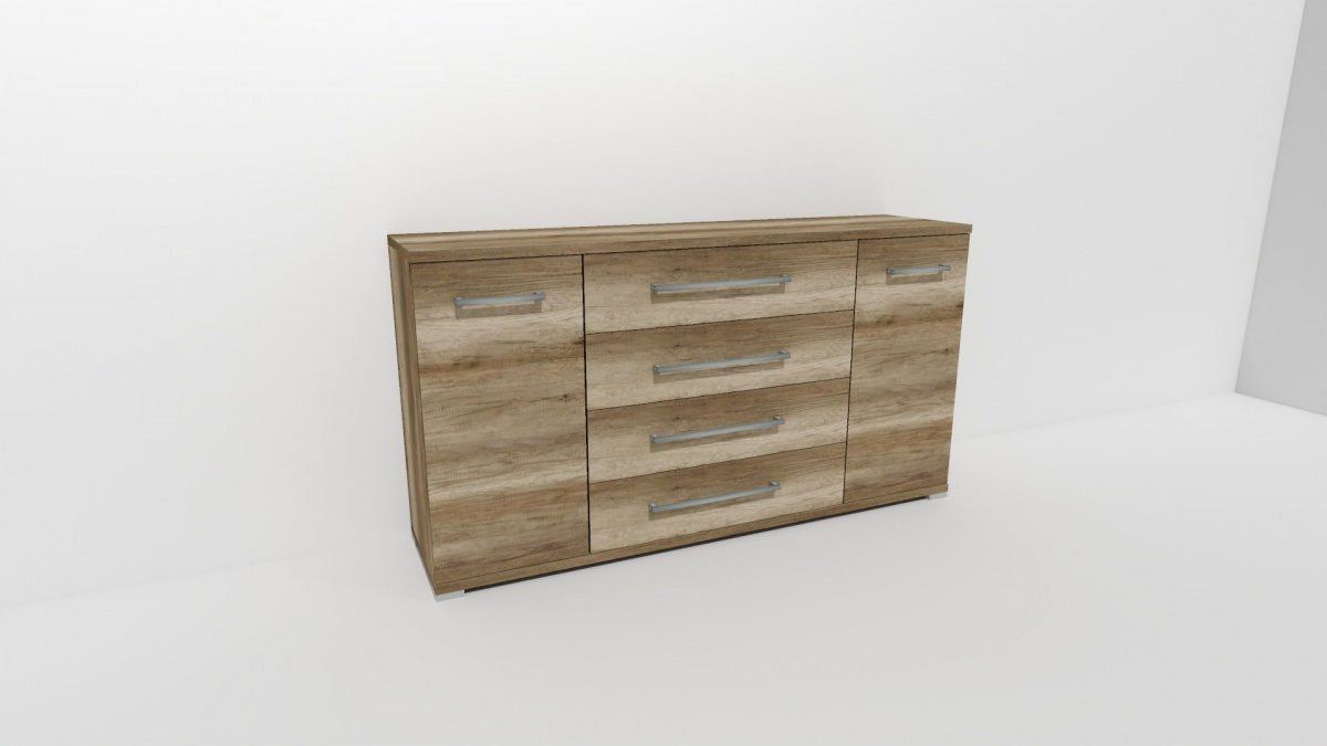 Úchytky příjemné do rukou a zásuvky, jenž jsou přizpůsobené častému otevírání jsou standardem nejen této řady komod. Vyrobeno z lamina o síle 18/25 mm. Výběr z několika akčních dekorů. Kvalitní kování a spojovací materiál je bez použití plastových součástek, vyjma ochranných krytek. Nastavitelné nohy nepoškozují podlahu.