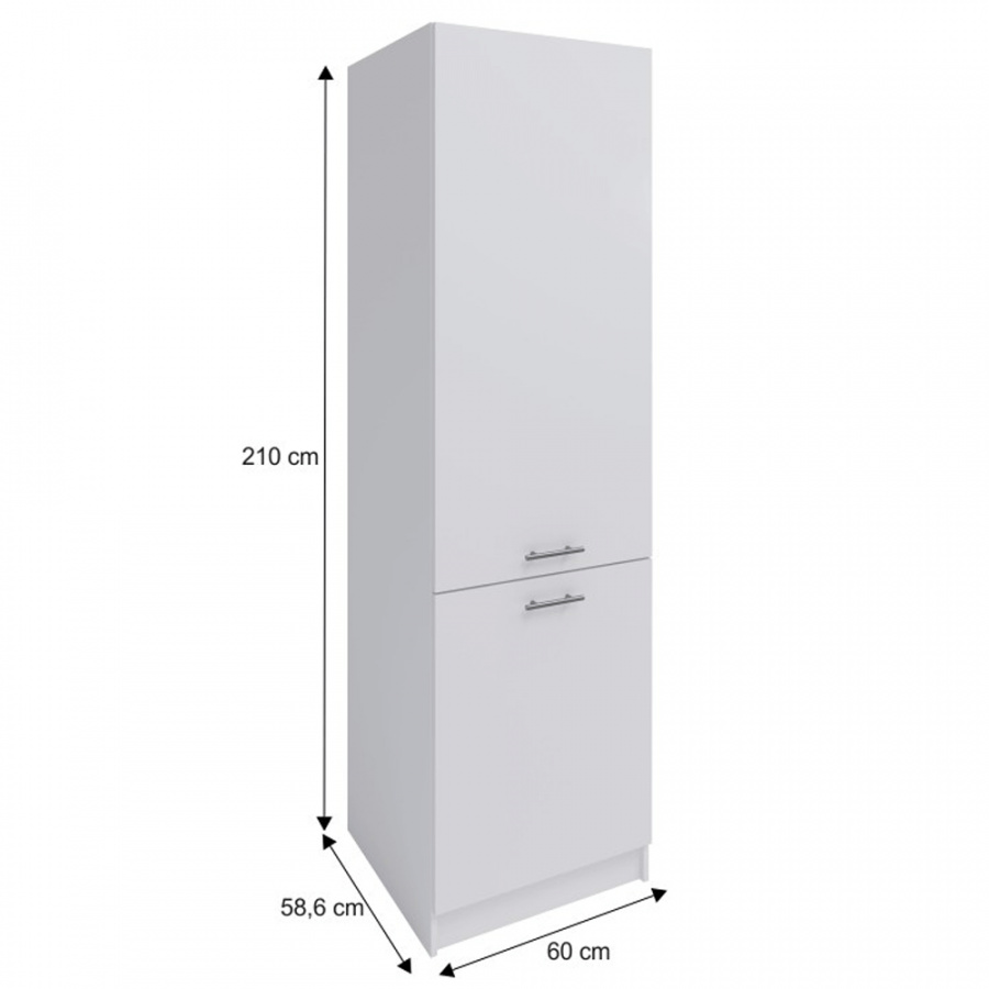 potravinová skříňka FABIANA Materiálové provedení: DTD laminovaná dřevotříska Barevné provedení: bílá Rozměry (ŠxHxV): 60x58,6x210 cm Dodávané v demontu. Možnost zakoupení pracovní desky Fabiana Metalic brown šedá s tloušťkou 2,8 cm, šířkou 60 cm a cenou za bm 1020 Kč. Možnost dokoupení univerzálního L / P dřezu v ceně 1.990,- Kč