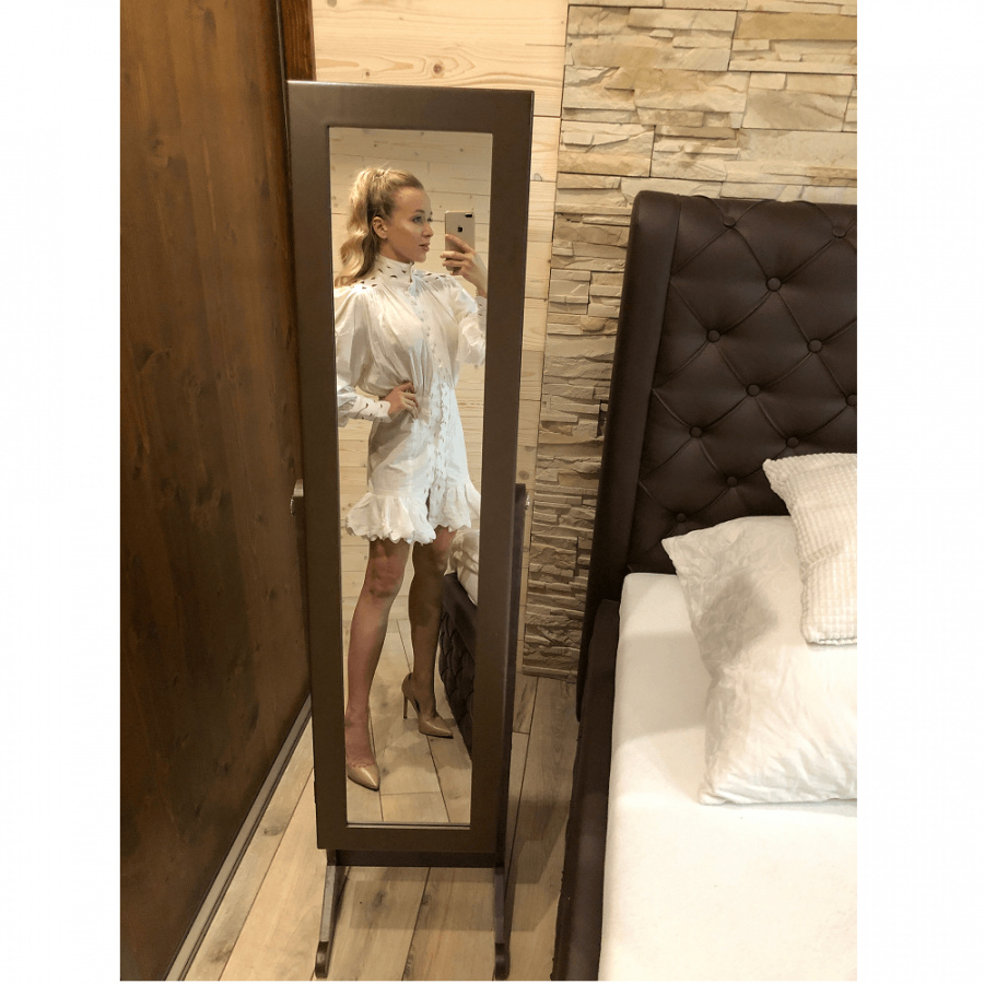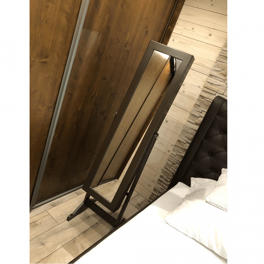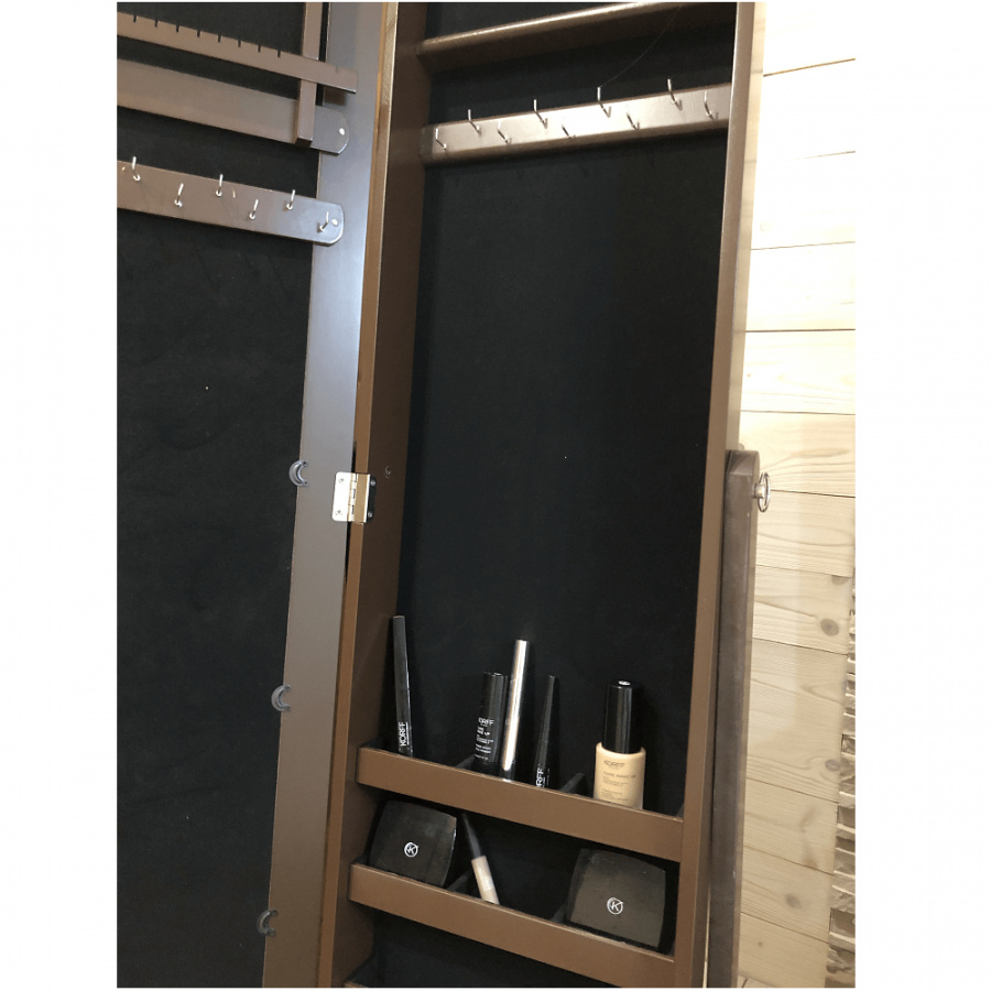 Nastavitelné zrcadlo MIROR s úložným prostorem. Tmavohnědé barevné provedení. Materiál MDF.