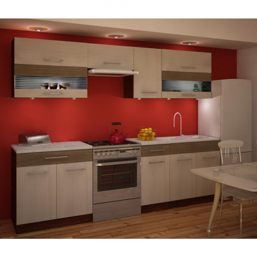 Skříňky jsou dodávány včetně pracovní desky a dolní lišty, dřezová skříňka dodávána bez pracovní desky. Sektorové skříňky jsou dodávány včetně pracovní desky a spodní lišty. Možnost dokoupení univerzálního L / P dřezu v ceně 1.990 Kč.