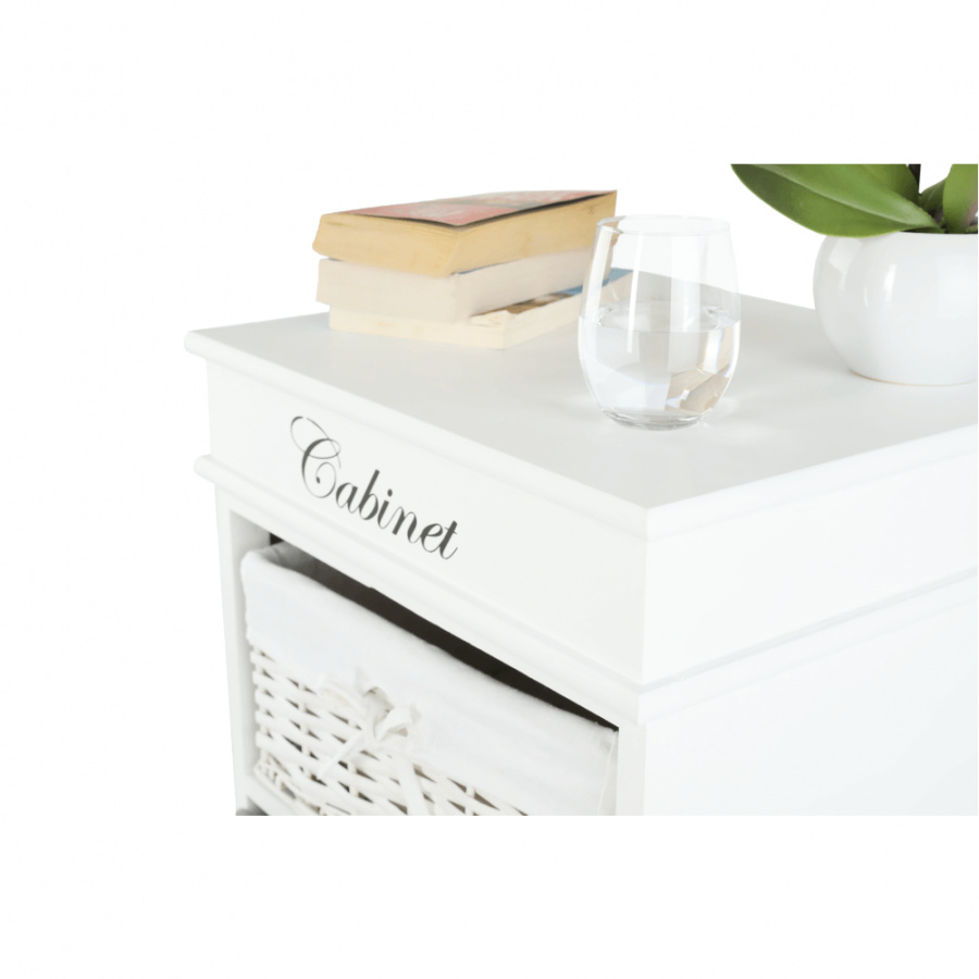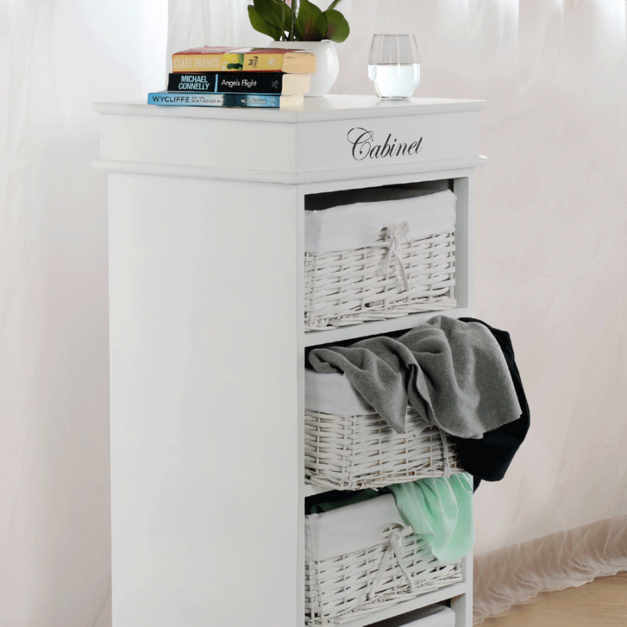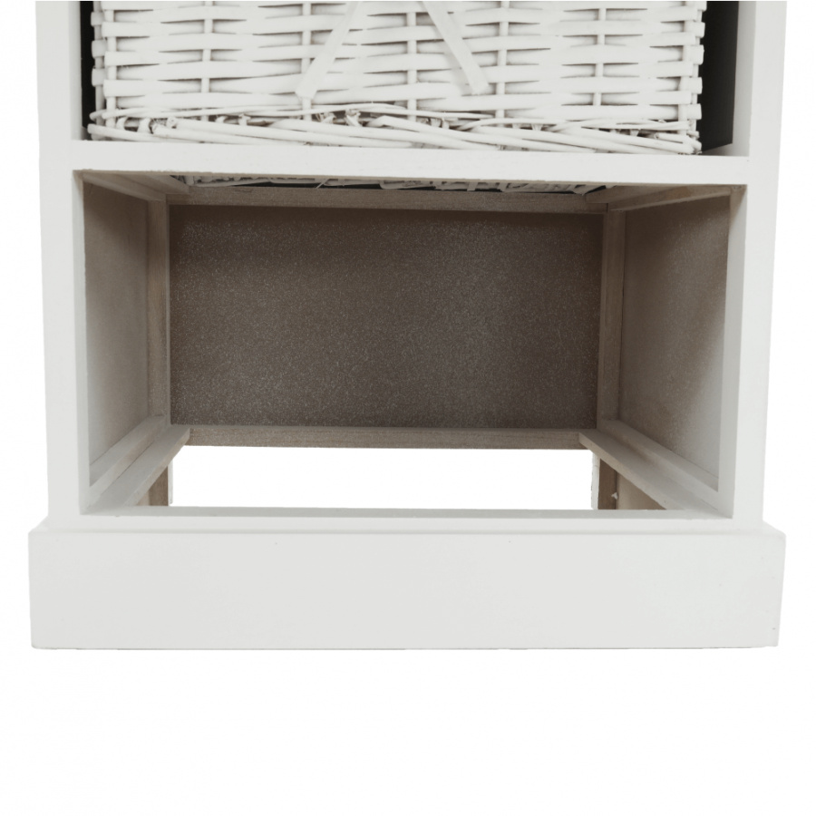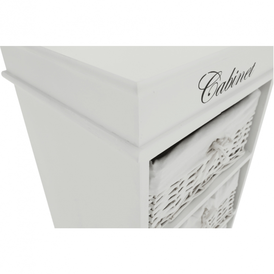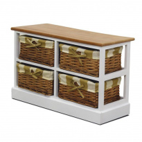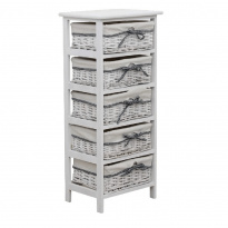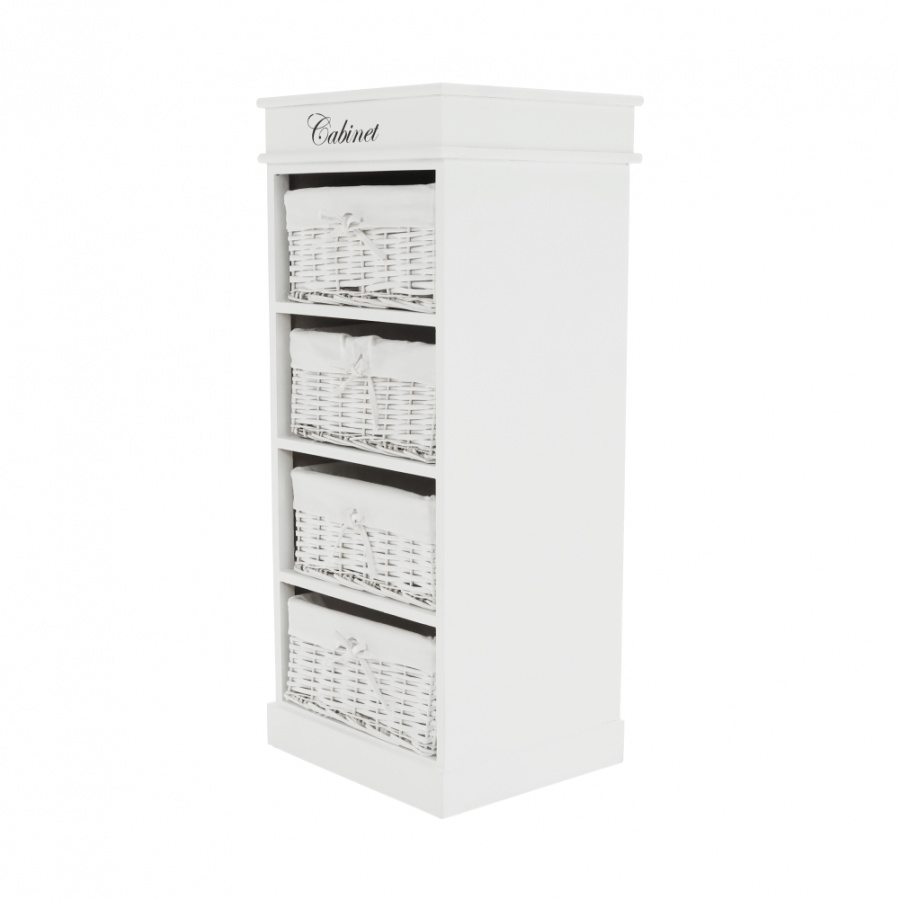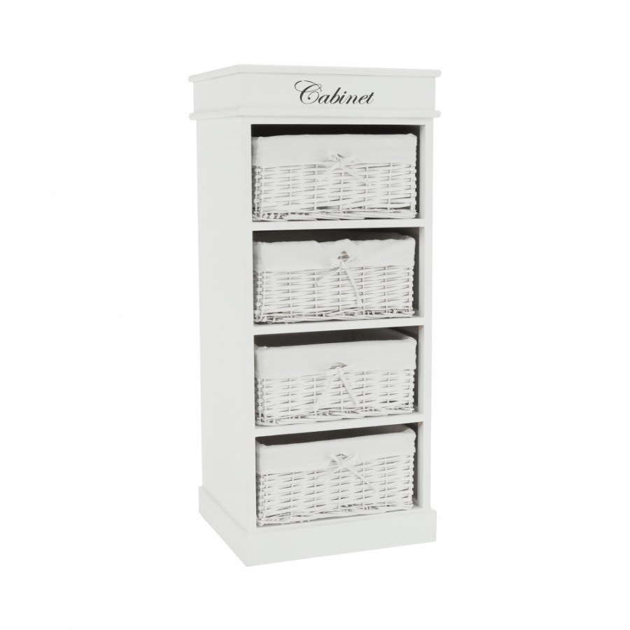4- šuplíková komoda BLANCO materiál: dřevo / proutí / látka barevné provedení: bílá rozměry: (ŠxHxV): 45x40x104 cm Dodávané v demontu.