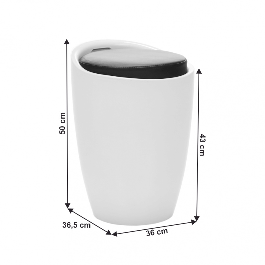 Moderní taburet DALILA NOVA. Materiál: textilní kůže / plast Barva: bílá / černá Rozměry (ŠxHxV): 36x36,55x50cm Výška sedu: 43 cm Nosnost: 100 kg Hmotnost: 6 kg.