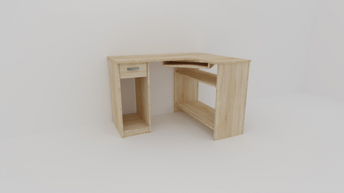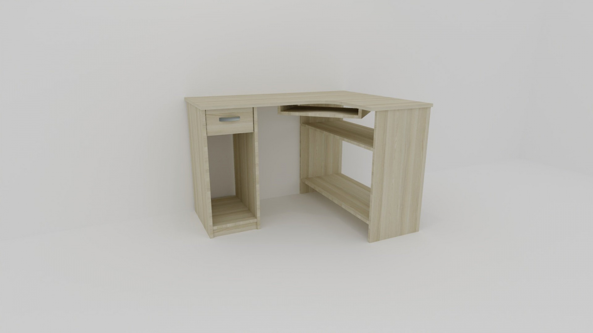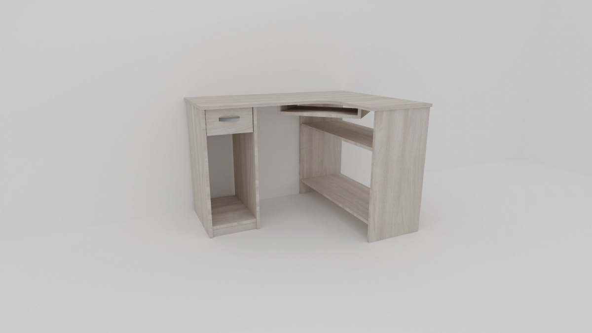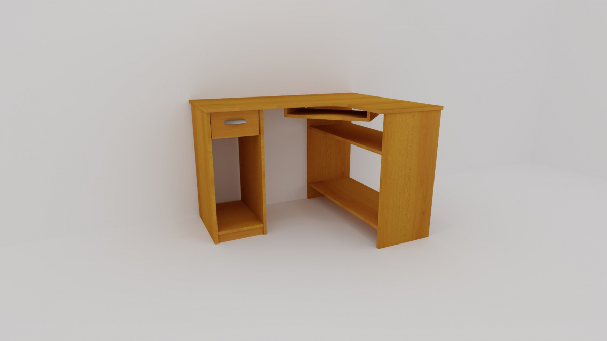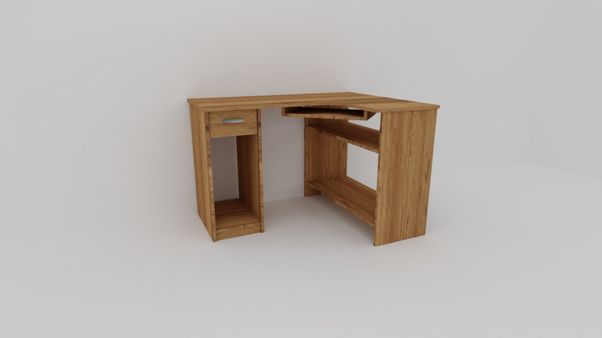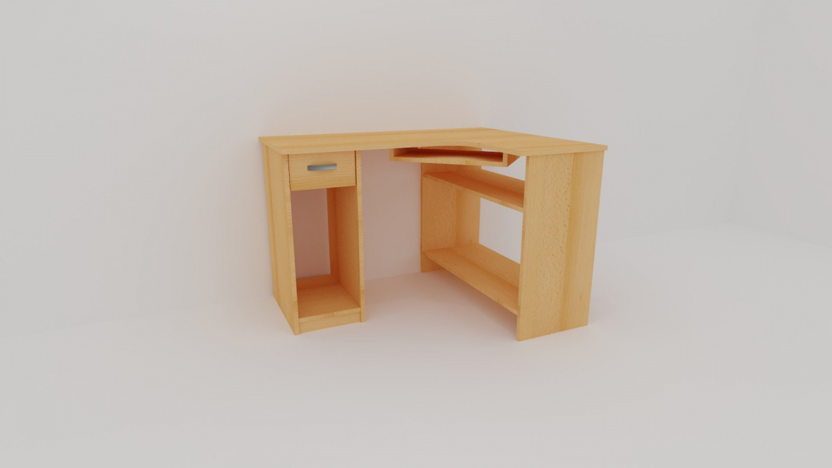 Rohové provedení šetří místo, avšak poskytuje dostatečnou pracovní plochu. Vyrobeno z lamina o síle 18mm. Výběr akčních dekorů. Kvalitní kování a spojovací materiál je bez použití plastových součástek,vyjma ochranných krytek.