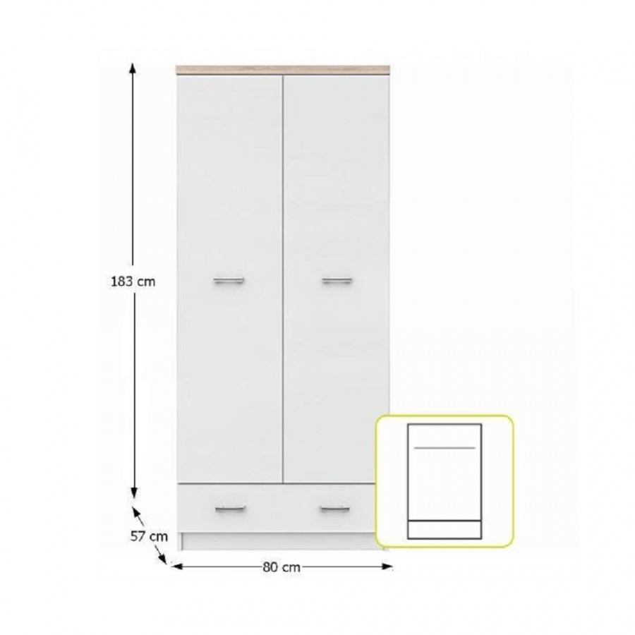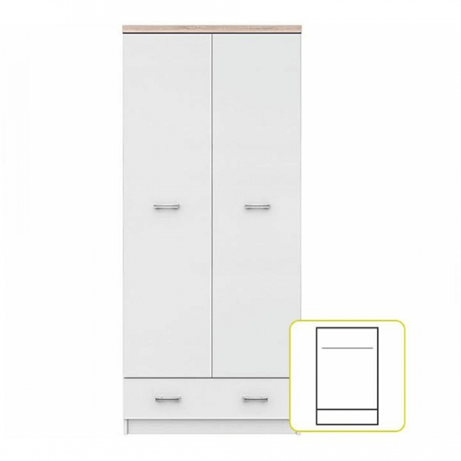 Dvoudveřová skříň 2D1S, bílá / dub sonoma, TOPTY