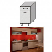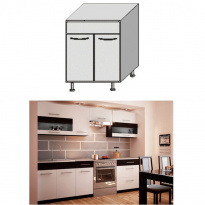 Skříňky jsou dodávány včetně pracovní desky a dolní lišty, dřezová skříňka dodávána bez pracovní desky. Sektorové skříňky jsou dodávány včetně pracovní desky a spodní lišty. Možnost dokoupení univerzálního L / P dřezu v ceně 1.990 Kč.