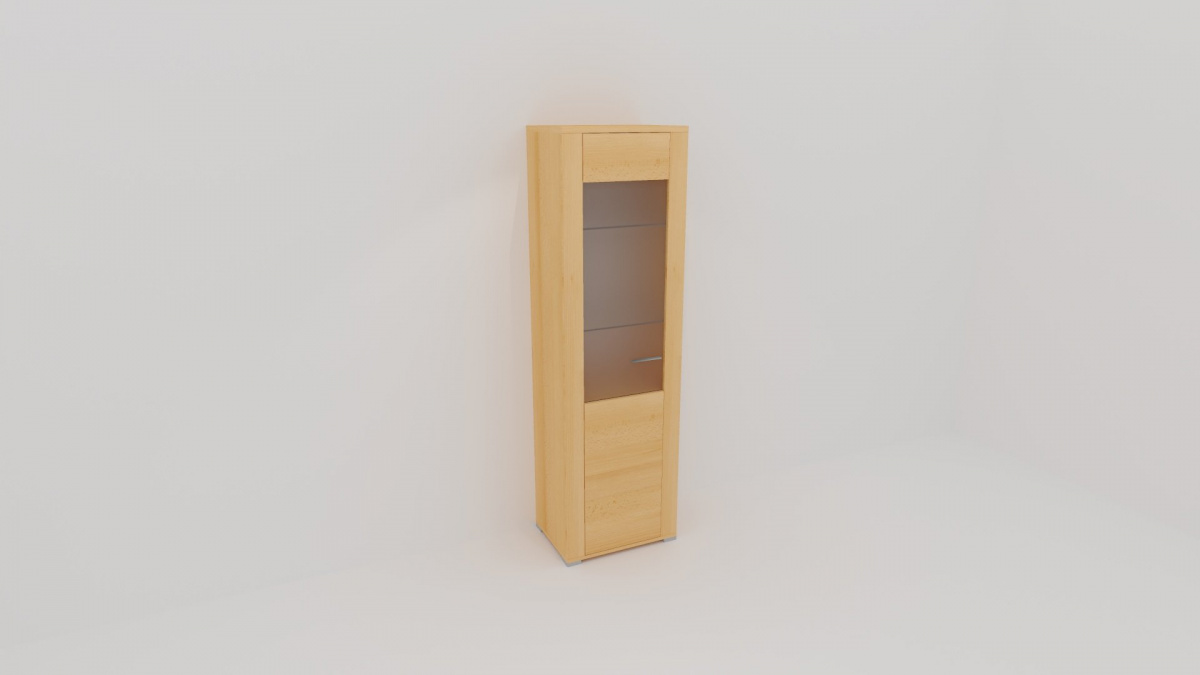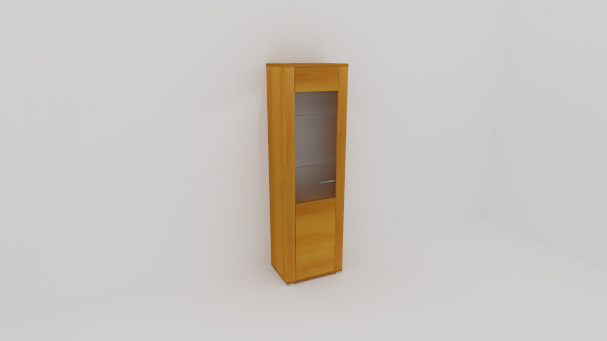 Vhodná pro dekorace či jiné předměty, jenž chcete mít pořád na očích. Skříň s jednoduchými liniemi pro moderní domácnost. Vyrobeno z lamina o síle 18 či 25mm, doplněno elegantními a do vzhledu zapadajícími nožkami. Díky nim tento nábytek nepoškozuje podlahu.