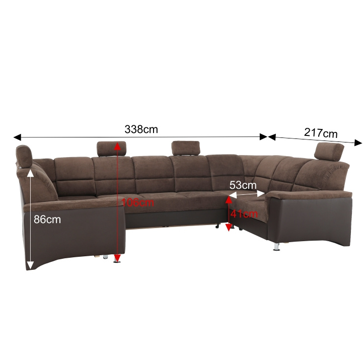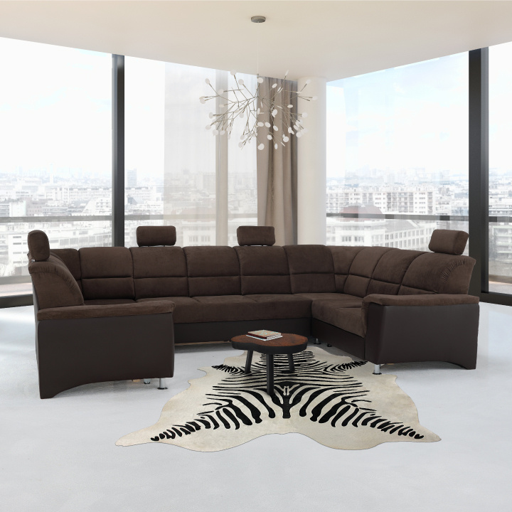 Celočalouněná univerzální rozkládací sedací souprava ve tvaru U, SANTIAGO U VELKÝ Materiál: ekokůže / látka Barva: hnědá / Matrix 5 hnědá Rozměry (ŠxHxV): 338x217 / 217x86 / 106 cm Plocha na spaní (ŠxD): 116x225 cm Výška sedu: 41 cm Hloubka sedu: 53 cm Výška spodního prostoru od podlahy: 10 cm Dodávané v demontu. Možnost objednání v 6 barevných provedeních látky Matrix a v 6 barevných provedeních ekokůže v ceně 35.740 Kč. Váš výběr poznamenejte do poznámky v objednávce. Upozorňujeme, že při objednávkách na nábytek v jiném barevném provedení, jak máme běžně skladem, neumíme zaručit doručení do Vánoc. Totéž platí i při nábytku označeném na objednávku. Doba dodání 14-17 týdnů.