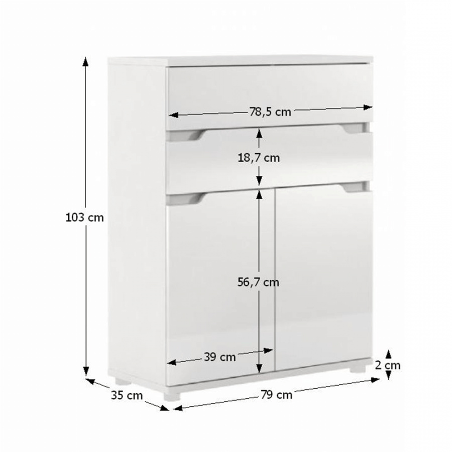 Komoda AS 01 ADONIS Materiál: DTD laminovaná Provedení: bílá / bílý extra vysoký lesk GH Rozměry (ŠxHxV): 79x35x103 cm Tloušťka materiálu: 15 mm Dodávané v demontu