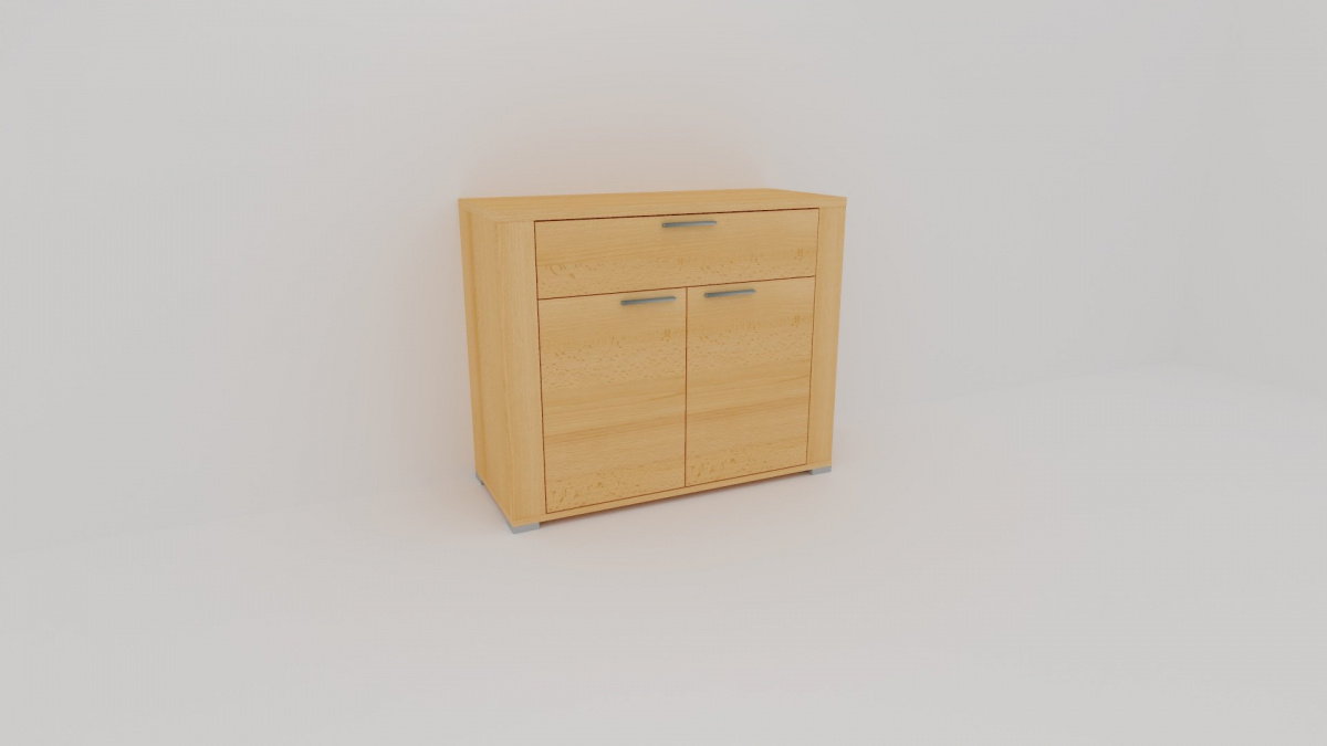 Komoda s odlišným rozložením úložného prostoru - formou zásuvky a skříněk. Vyrobeno z lamina o síle 18 či 25mm. Výběr akčních dekorů. Kvalitní kování a spojovací materiál je bez použití plastových součástek,vyjma ochranných krytek.