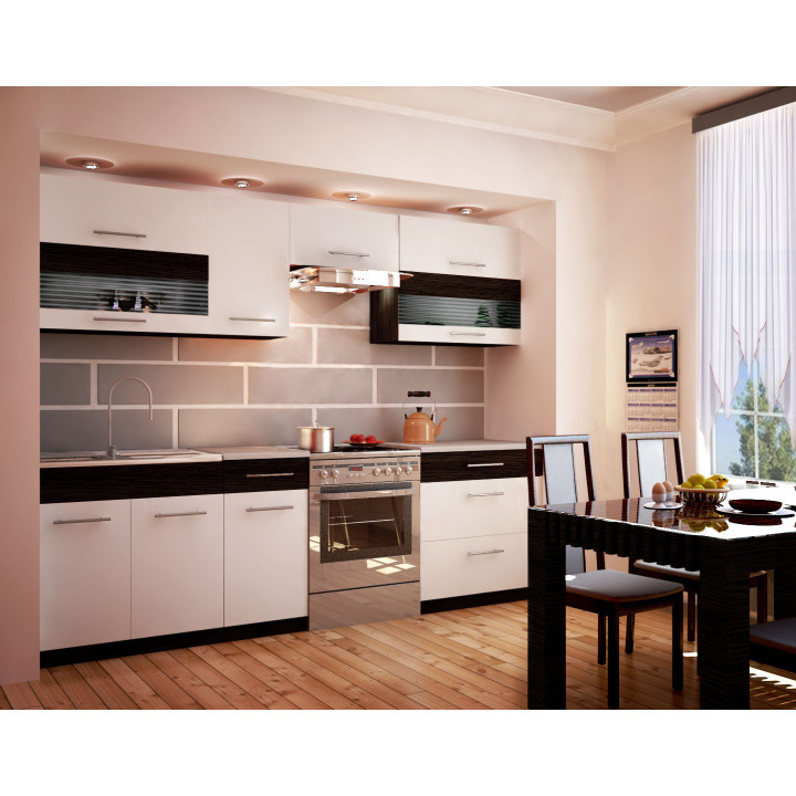 Skříňky jsou dodávány včetně pracovní desky a dolní lišty, dřezová skříňka dodávána bez pracovní desky. Sektorové skříňky jsou dodávány včetně pracovní desky a spodní lišty. Možnost dokoupení univerzálního L / P dřezu v ceně 1.990 Kč.