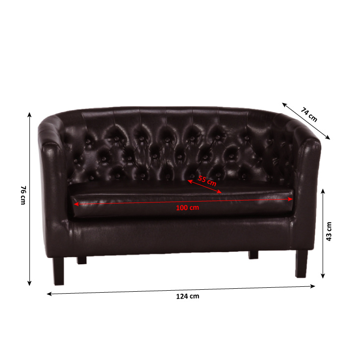 Moderní 2-sed Maron Materiál: ekokůže / nožičky z masivního dřeva Barva: tmavohnědá / černá Rozměry (ŠxHxV): 124x74x76 cm Výška sedu: 43cm Hloubka sedu: 55 cm Dodávané v demontu.