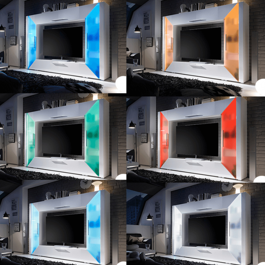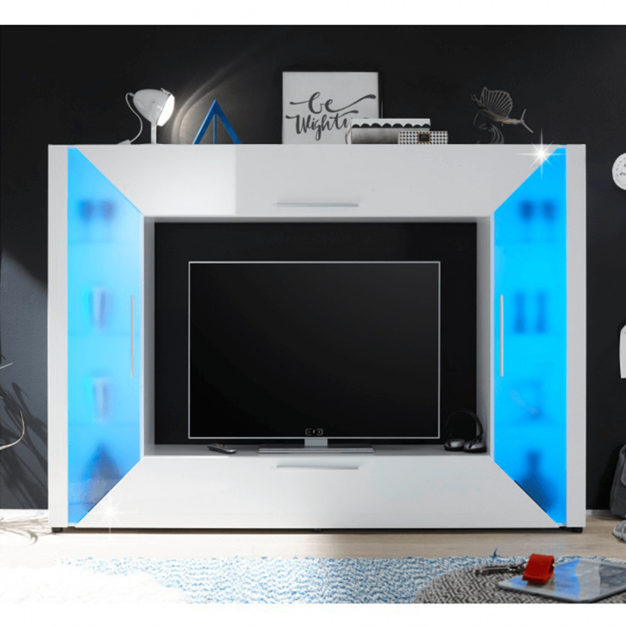 TV a media stěna, bílá extra vysoký lesk / bílá, ADGE