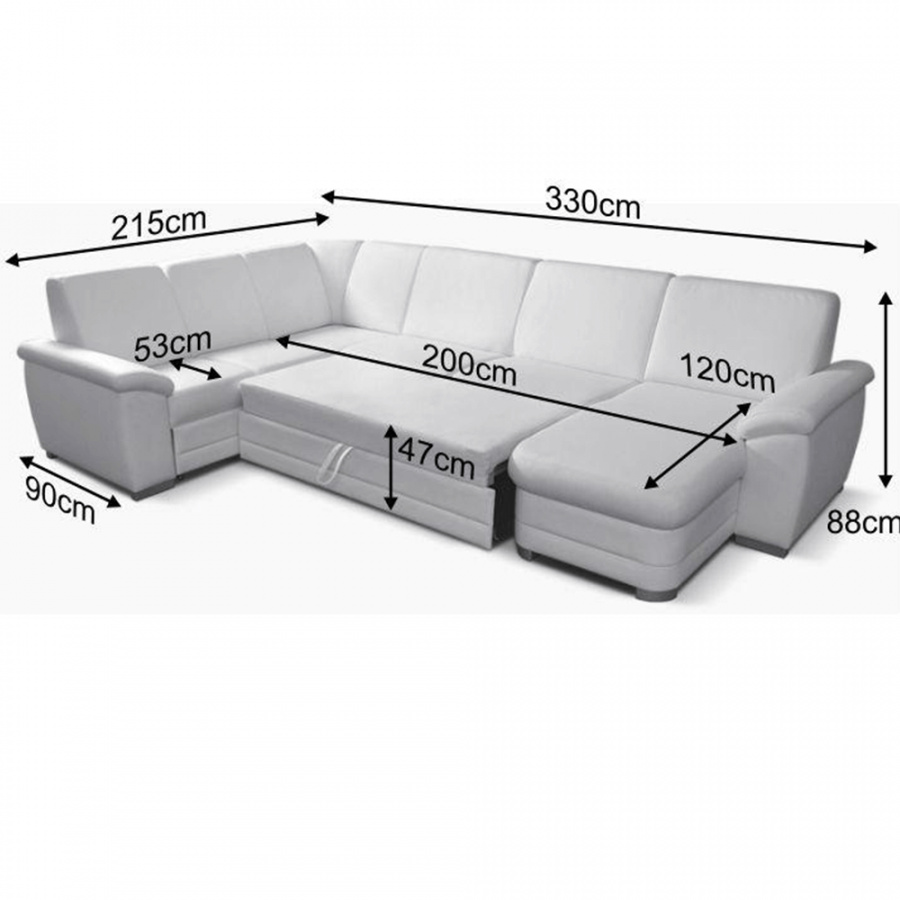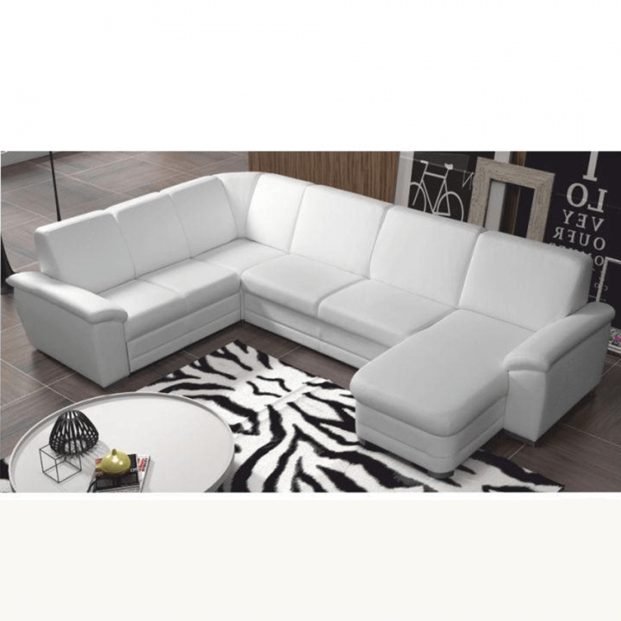 Rohová celočalouněná rozkládací sedací souprava s úložným prostorem ve tvaru U, Pravé provedení, Materiál: ekokůže bílá. Rozměry (ŠxVxH): 330x88x215 / 153 cm, plocha na spaní (ŠxD): 120x200 cm. Výška spodního prostoru od podlahy: 3 cm Nabízíme vám možnost zvolit si barevný odstín ze sedmi barev látky Cable a ze sedmi barev ekokůže. Odstíny najdete v přiloženém vzorníku. Výběr barevného odstínu poznamenejte při objednávání přímo do poznámky. Upozorňujeme, že při objednávkách na nábytek v jiném barevném provedení, jak máme běžně skladem, neumíme zaručit doručení do Vánoc. Totéž platí i při nábytku označeném na objednávku. Doba dodání 14-17 týdnů. Cena takto složené sedačky v jiné barvě závisí na počtu jednotlivých dílů, které ji tvoří. Doporučujeme prověřit si konečnou cenu na e-mail adrese nakup@tempo-kondela.sk.