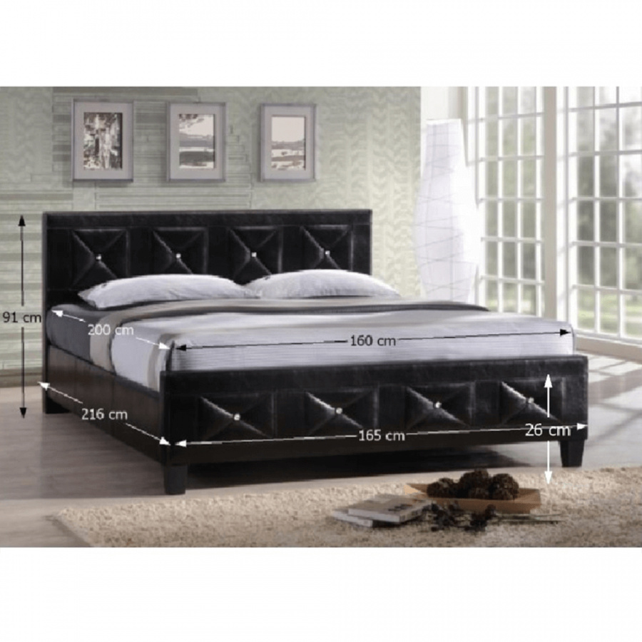 postel s roštovými deskami, provedení: černá ekokůže, vnější rozměry (ŠxHxV): 165x216x91 cm, plocha na spaní: 160x200. K posteli doporučujeme zakoupit matraci o rozměru 160x200 cm na základě naší nabídky. Dodáváno v demontu.