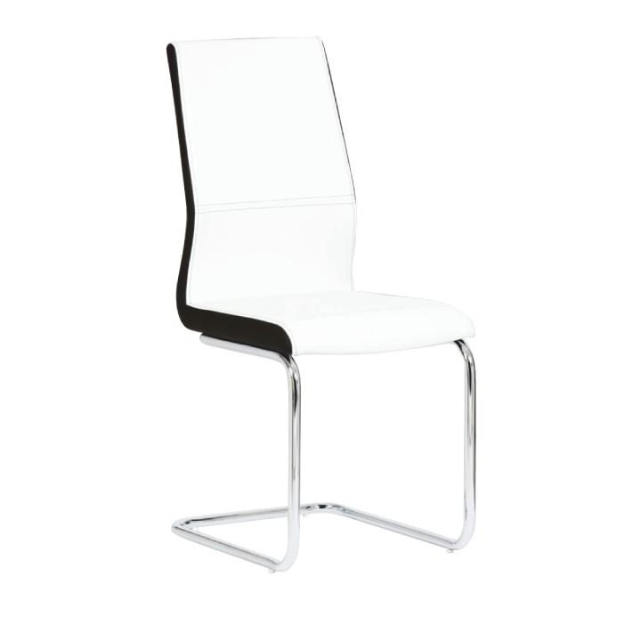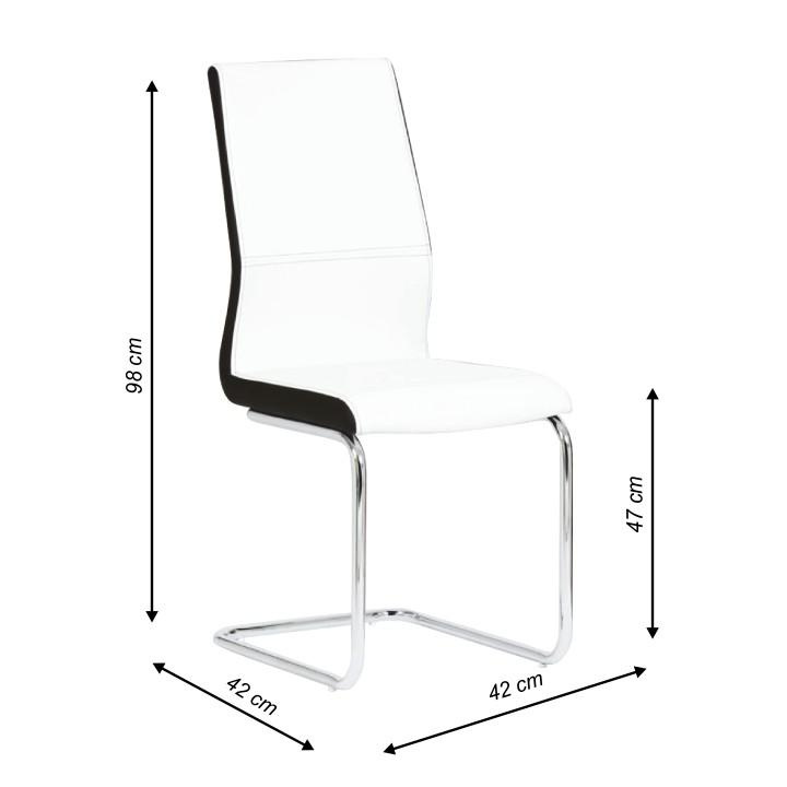 Jídelní židle, materiál: ekokůže + chrom, barevné provedení: bílá + černá, rozměry (ŠxHxV): 42x42x98 cm, výška sezení je 47 cm. Nosnost: 110 kg Zboží je dodáváno v demontu.
