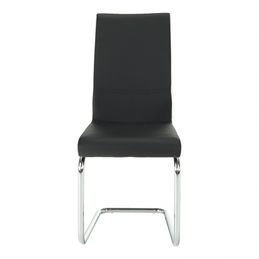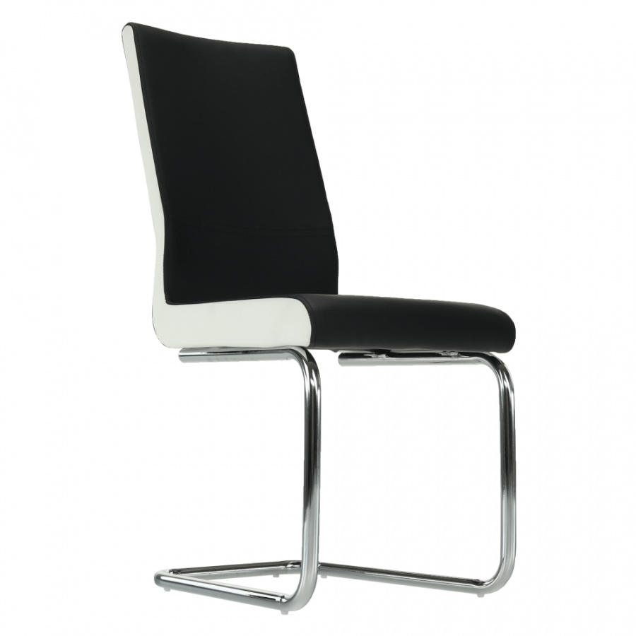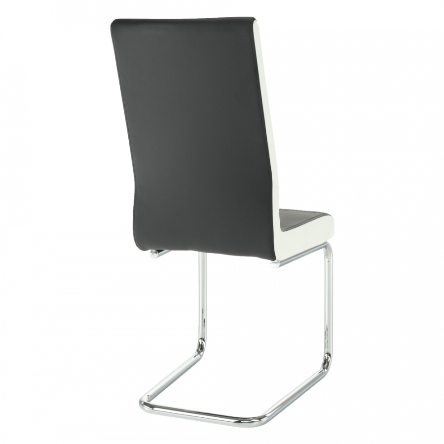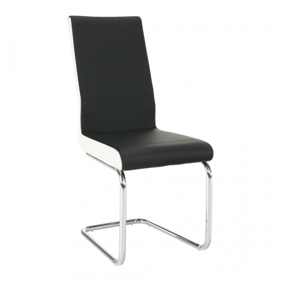 Jídelní židle, materiál: ekokůže + chrom, barevné provedení: černá + bílá, rozměry (ŠxHxV): 42x42x98 cm, výška sezení je 47 cm. Nosnost: 110 kg Zboží je dodáváno v demontu.