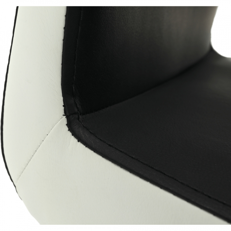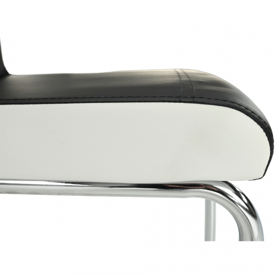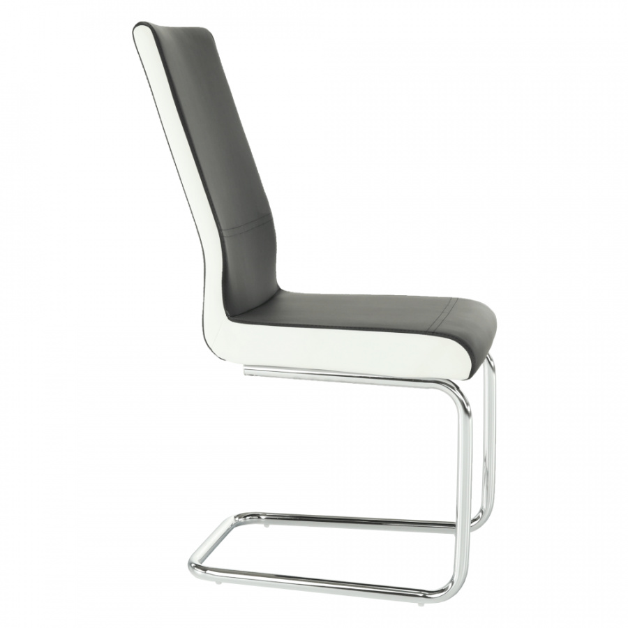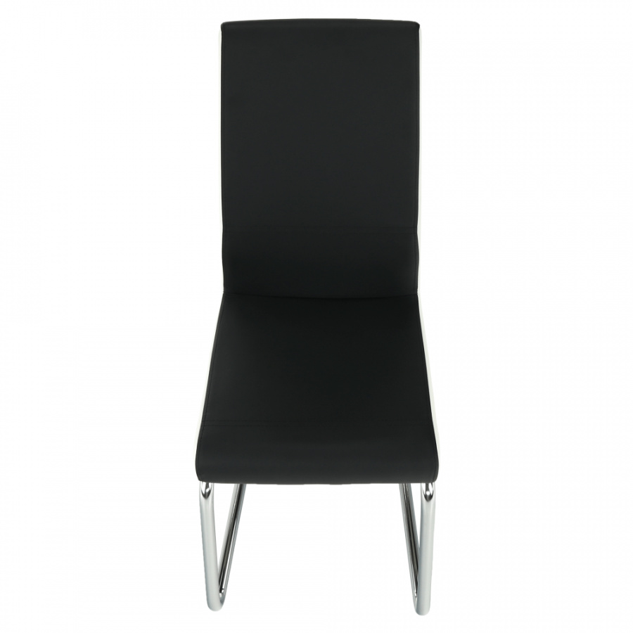 Jídelní židle, materiál: ekokůže + chrom, barevné provedení: černá + bílá, rozměry (ŠxHxV): 42x42x98 cm, výška sezení je 47 cm. Nosnost: 110 kg Zboží je dodáváno v demontu.