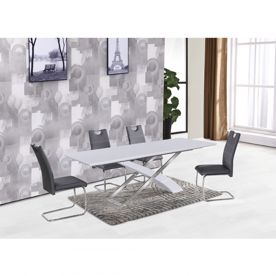 Jídelní židle, Materiál: ekokůže / chrom Barva: tmavě šedá Rozměry (ŠxHxV): 44x56,5x98,5 cm, Výška sedu: 47 cm. Dodávané v demontu. Nosnost: 110 kg